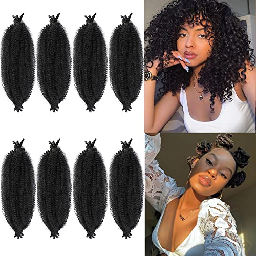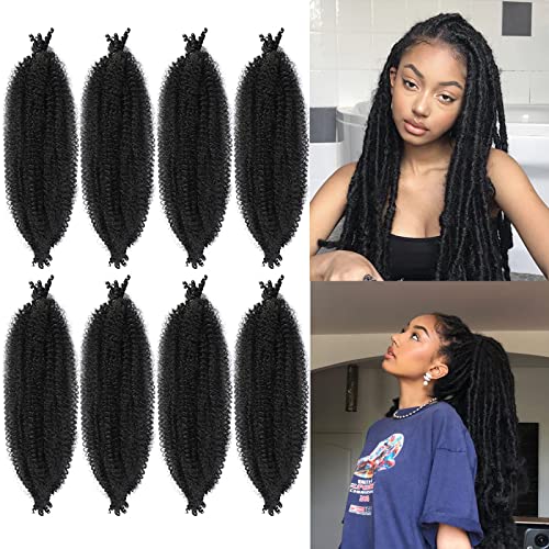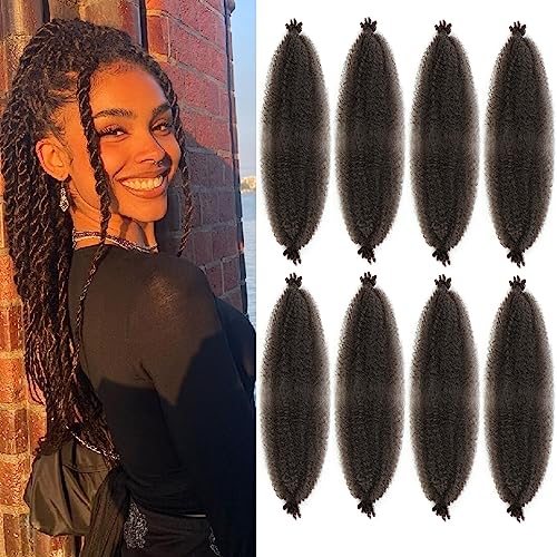 LPARMJIT Springy Afro Twist Hair 16-tums 3-pack förseparerat Kinky Marley Twist Braided Hair For Soft Butterfly Locs Pre-Fluffed Afro Twist Hair Extensions (16 tum förpackning med 8), 1b)