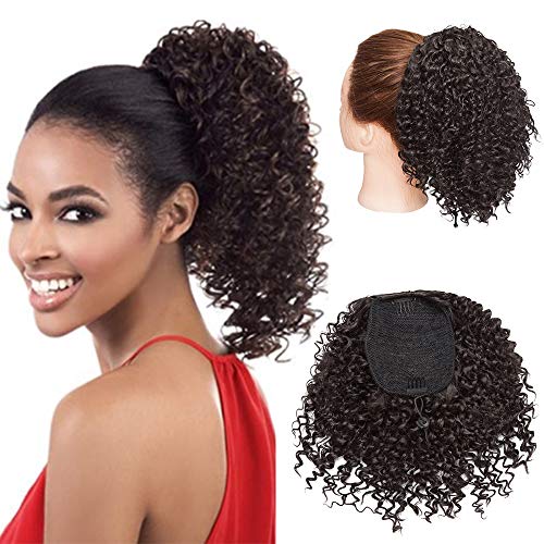 Afro hästsvans hårsnodd Dutt Kinky Curly Hästsvans Topp Hair Extensions Lockig Natural medel brun
