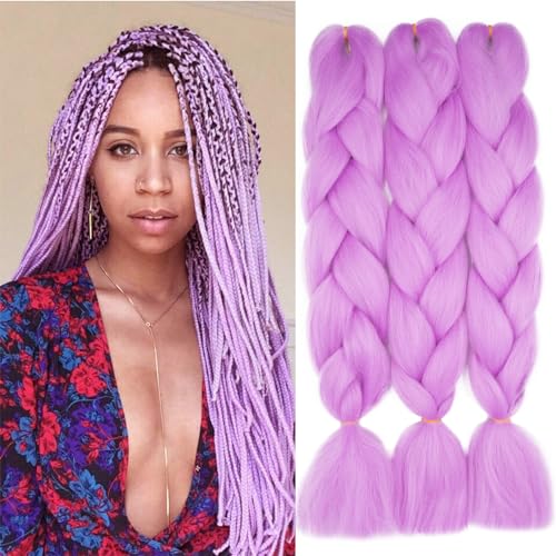 Dcbaboo Braids Extensions syntetiskt hår för flätning 3-pack 50 cm (24 tum), Ombre Jumbo Braiding Hair kanekalon, hårförlängningar, flätor, Afro Crochet Box, flätor, hår för flätor, 300 g, ljuslila