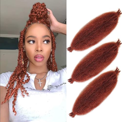 Springy Afro Twist Hair3 st förseparerad Kinky Marley Twist flätat hår 24-tums vårtvinnat hår för distresserat fuxlocs syntetiskt hår förlängningar kubanskt tvinnat hår (350#-kopparröd)