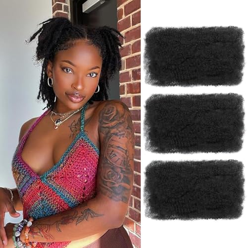 FASHION IDOL Afro Kinkys Bulk Human Hair för Dreadlock Extensions Loc Repair Braiding Twist Afro Kinky Human Hair för Locs 1 Pack 50g 1.8 Oz Ett och tre paket till salu