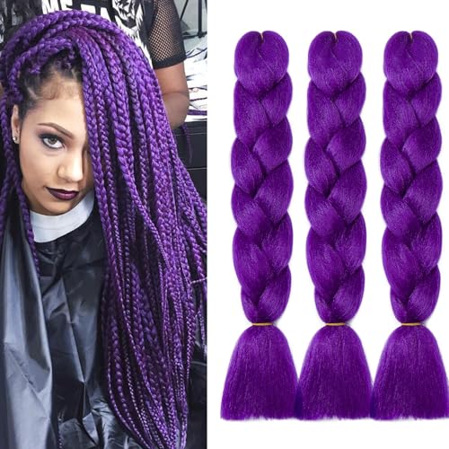 Dcbaboo Braids Extensions syntetiskt hår för flätning 3-pack 50 cm (24 tum), Ombre Jumbo Braiding Hair kanekalon, hårförlängningar, flätor, afro virkad låda, flätor, hår för flätor, 300 g, mörklila