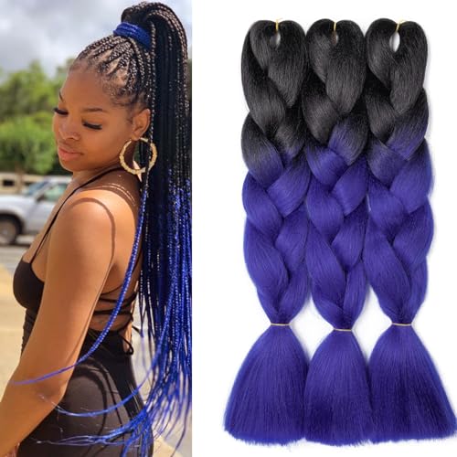 Dcbaboo Braids Extensions syntetiskt hår för flätning 3-pack 50 cm (24 tum), Ombre Jumbo Braiding Hair kanekalon, hårförlängningar, flätor, afro virkad låda, flätor, hår för flätor, 300 g, svart och