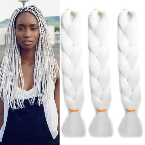 Dcbaboo Braids Extensions syntetiskt hår för flätning 3-pack 50 cm (24 tum), Ombre Jumbo Braiding Hair kanekalon, hårförlängningar, flätor, Afro Crochet Box, flätor, hår för flätor, 300 g, vit
