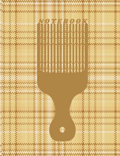 Golden Plaid Afro Pick Notebook for Afro Hair Culture: 8.5"x11" 120 page writer's line journal