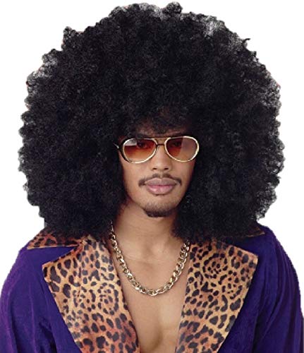 SHIQUAN Peruk 70-tals- och 80-talsperuk, Afro-peruk, 70-talets tillbehör, hippie- och cosplay- kostymfesterherrperuk (svart)