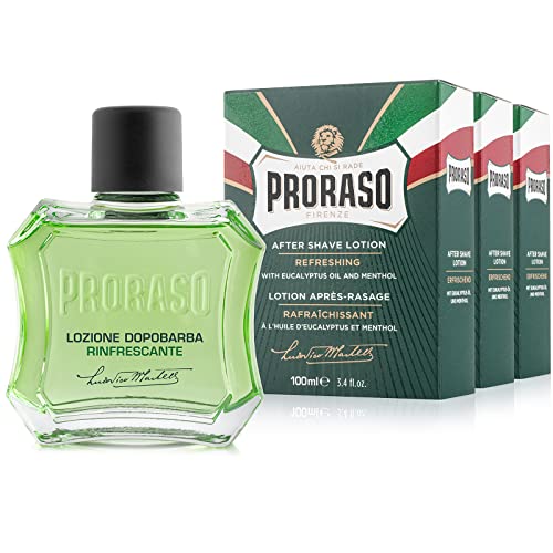 Proraso After Shave Lotion Refresh, 3 × 100 ml, Aftershave för män med eukalyptusolja & mentol, hjälper huden att regenerera efter rakning, Made in Italy