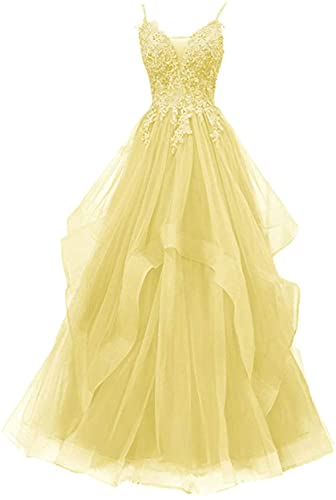 Xinaier Dam spagettiremmar lång tyll formell aftonklänning balklänning brudklänning, GUL, 40