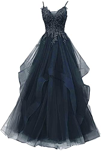 Xinaier dam spagettiremmar lång tyll formell aftonklänning balklänning brudklänningar, Marinblå, 38