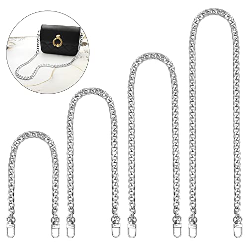 Fickkedja, 4 stycken väskkedjor, metallkedja bärrem guldkedja för väska, platta kedjeremmar, handväska handväska, plånbok, clutch-aftonväska (silver)