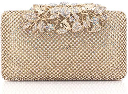 Dexmay strass kristall kuvertväska aftonväska med blomspänne kvinnor handväska för bröllop iriserande guld, Ab Guld, Medium