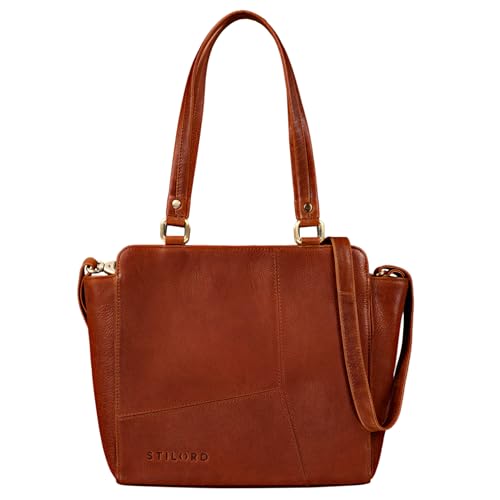 STILORD "Malou" Elegant läderhandväska för damer axelväska bred klassisk läderväska för utevistelse aftonväska kvinnor äkta läder Farbe:Kara-konjak