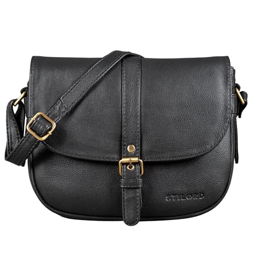 STILORD "Enya" läderväska dam axelväska retro handväska liten aftonväska elegant axelväska väska för iPad 9.7 tum DIN A5 äkta läder Farbe:Svart