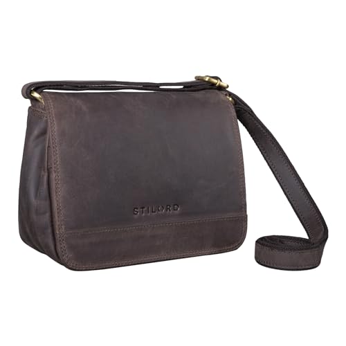 STILORD "Iris" läderhandväska dam liten klassisk – axelväska för fritid, utekvällar & fest – äkta läder aftonväska med fack Farbe:Mörkbrun