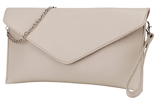SH läder äkta läder clutch axelväska liten väska elegant aftonväska i narvigt koskinn med bärkedja 31,5 x 16,5 cm Saya G369, Beige, Small