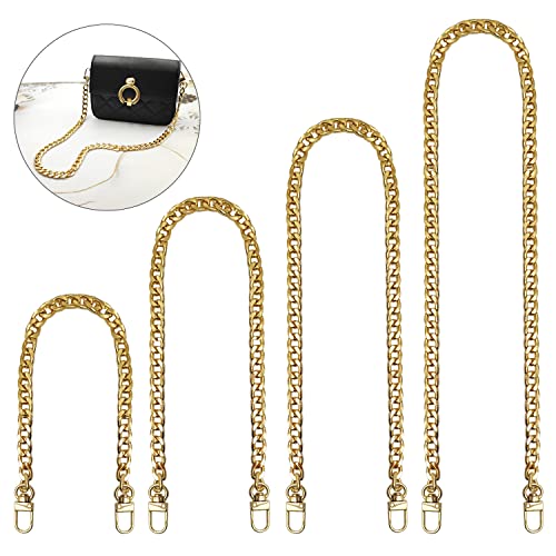 Hossom Fickkedja, 4 stycken väskkedjor, metallkedja bärrem guldkedja för väska, platta kedjeremmar, handväska handväska, plånbok, clutch-aftonväska (guld)