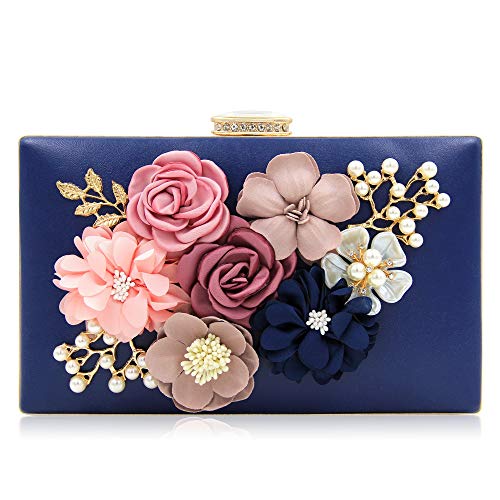 Milisente Kvinnor Kuvertväska Blomma Aftonväska Handväska Bröllop Kvällspåse Axelväska Flicka (marinblå)