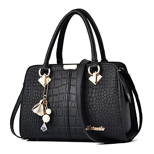 FANDARE Damhandväska axelväska dam axelrem axelväska shoppingväska väska väska resa handväska aftonväska stadsväska för flickor vardag kontor skola utflykt shopping vattentät PU-läder, Schwarz