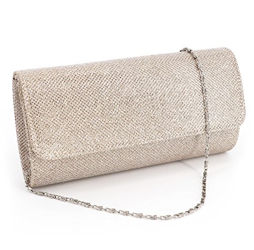 Larcenciel clutch damer, glitter aftonväska axelväska med avtagbar kedja, moda handväska elegant Envelope-väska, champagne, Klassisk, moderiktig