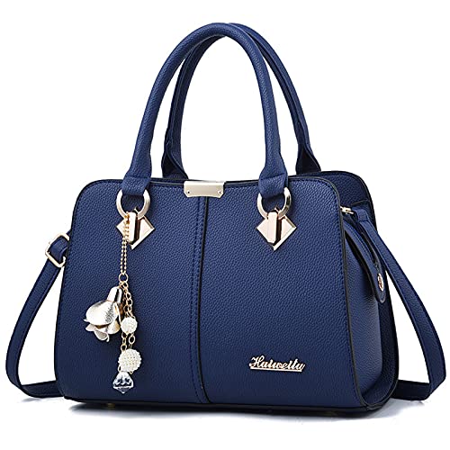 FANDARE Damhandväska, axelväska, damaxelväska, shopper tote, resa, handväska, axelrem, aftonväska, stadsväska, vattentätt PU-läder, Blå A, L
