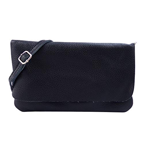 SH läder äkta läder axelväska clutch liten väska aftonväska 24,50 x 15 cm Ely G149, Mörkblå, Small