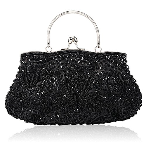 BABEYOND Kväll Kuvertväskor för kvinnor – Vintage aftonväska tillbehör för kvinnor Gatsby 1920-talet pärlkoppling med pärlor, Svart, onesize