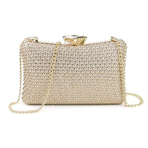 NICOLE & DORIS Fest Väskor för Kvinnor Aftonväska Ceremoni Väskor Dam Kopplingsväskor Handväska med Glitter Diamant Axelväska Kedja, Guldfärgad, L, Stilren