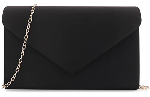 Miss Lulu kuvertväska för kvinnor, aftonväska för bröllop, stor rosett mjuk med fin glitter, syntetisk handväska, bal fest semesterväskor, Svart, Medium
