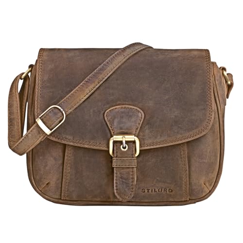 STILORD 'Iris' läderhandväska dam liten vintage axelväska för att gå ut klassisk aftonväska tygväska äkta kohud, Mörk – brun, M, Kurirväska