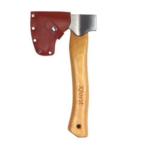 Xforst Yxa, Bil, Handsyxa, tillverkad av smitt kolstål. Trekkingyxa med Hickoryträhandtag och äkta läderskydd. Vikingayxa. 27 cm / 0,67kg. Modell X-AG1.
