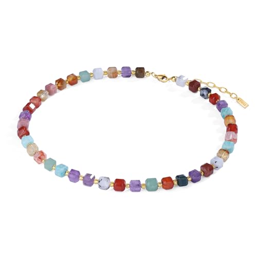COAI Choker pärlhalsband av 7 chakra färgglada kristallhalsband för kvinnor, 40+5cm, Sten, Jaspis Aventurin Agat