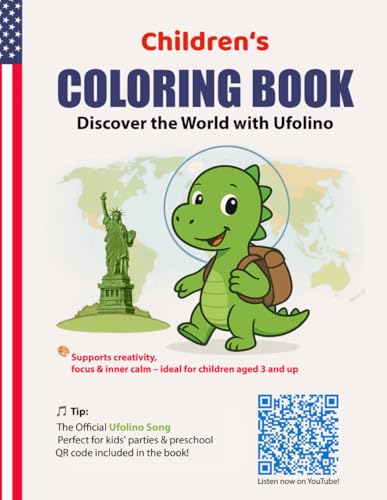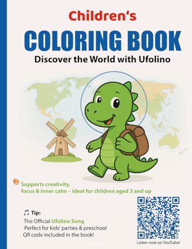 Dinosaur Coloring Book for Kids – Little Ufolino Explores the World, 79 Fun Coloring Pages + Ufolino Song: Creativity & Learning Fun for Ages 3+