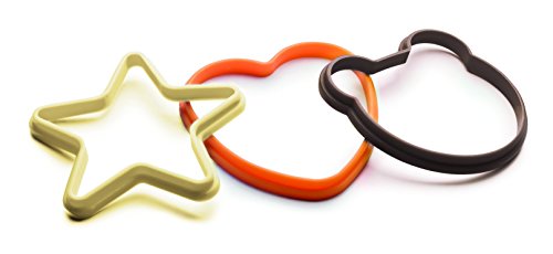 Silikon stekt äggform, 3 st hjärt- och rund- och stjärnformad pannkaksmaskin för att spara matlagningstid, isolerad kakform bakstencil för snabb enkel gör-det-själv ägg/kaka/bakverk