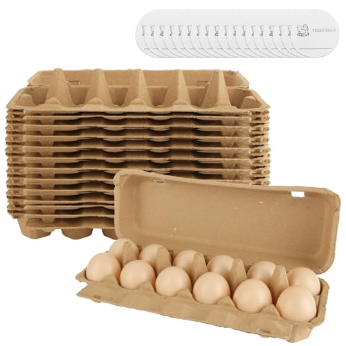 ZOFUN Äggkartong äggkartonger 12 kartong, 20 stycken ägglådor, ägglådor, 12 kartong med lock för 12 ägg vardera med klistermärken, biologiskt nedbrytbara ägglådor för ägg (brun)