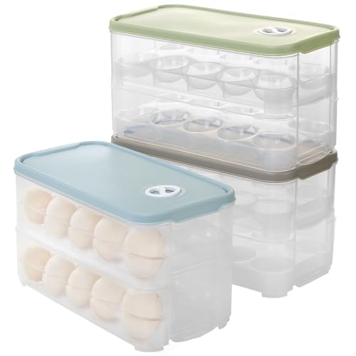 JIEHIN 3 stycken 20 ägg ägglåda dubbla lager, äggbehållare med lock, plast äggförvaringslåda transportlåda, äggförvaring kylskåp stapelbara äggkartong för kök