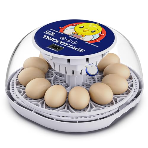 TRIOCOTTAGE Ägginkubator för 12 äggkläckningsmaskin med automatisk svarvning av äggen, temperaturkontroll, 2 luftfuktighetsnivåer och vattenförsörjning för kycklingar, vaktlar och ankor.