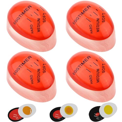 4 stycken timer för kokta ägg, äggklocka, äggklocka för tillagning äggfärg ändra timer oändligt återanvändbar (5,5 × 3,9 × 3,2 cm)