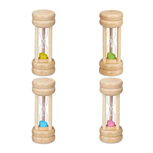 Relaxdays Set med timglas, 4 delar, korttidsklocka, 4 drifttider, H x D: 10 x 4 cm, tandborstningstimer, äggklocka sand, färgglad