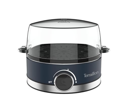 TERRAILLON - New Moon - Elektrisk äggkokare, kapacitet 7 ägg, 410 W, inbyggd timer, integrerat lock, mätkopp, målad rostfritt stålkropp, blå