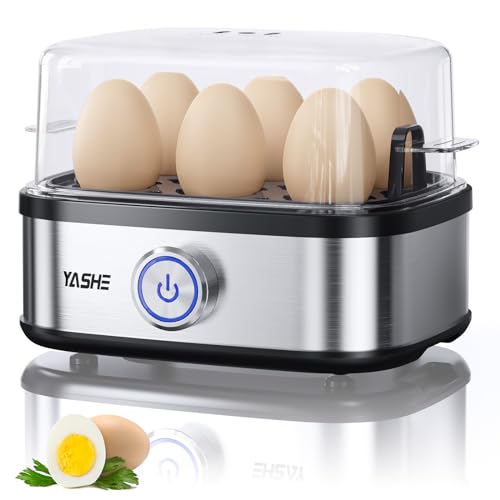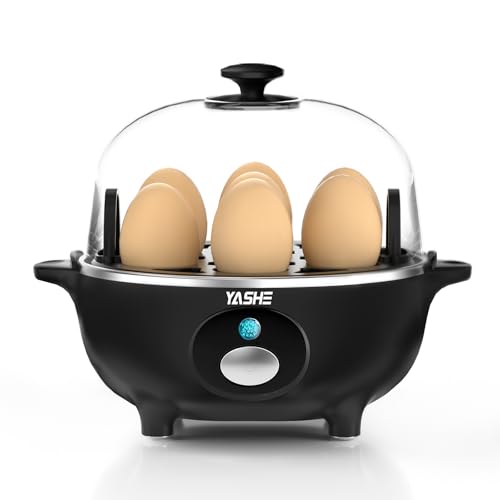 YASHE Rapid Äggkokare, 360 W Äggkokare Multifunktionell, 7-ägg Lätt att skala, Mjuka, Medium, Hårdkokta, Poacher, Omelettkokare, Ångkokare, Autoavstängning, Summer, Indikatorlampa, Kompakt Design