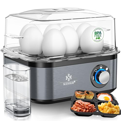 KESSER® Äggkokare för 1 till 8 ägg elektrisk av rostfritt stål, 500 W och varmhållningsfunktion, LED-vridbrytare, tre hårdhetsgrader | BPA-fri och diskmaskinssäker, mätkopp, ägghållare och omlettskål