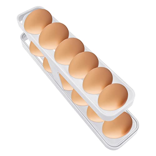 Självrullningsbar ägghållare för kylskåp, stapelbar plast, återanvändbar, ägglåda med lock, äggkorg (3 lager)