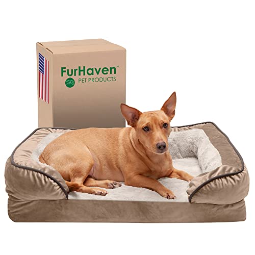 FurHaven Husdjurssäng för hundar och katter – ägglåda i plysch och mocka i soffstil, ortopedisk hundsäng, avtagbart maskintvättbart skydd – espresso, stor (färg: nyansen kan variera på grund av belysning)