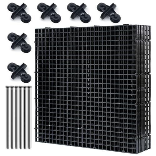 LINLAN Akvariumskiljeväggsats för akvarier, 8 stycken 30 x 30 cm plastgaller med 6 sugkoppsklämmor och 20 buntband, ägglåda för fiskisolering (svart)