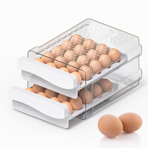 Mitening Lådor ägghållare, ägghållare för kylskåp, lådor, äggkorgar med glidskena och handtag, ägglåda, kylare, äggförvaring och ägghylla, haklapp för upp till 18 ägg (klar)