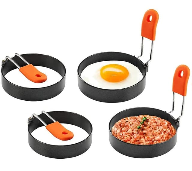 Stekta äggformar, 4 stycken, äggring, runda äggringar, rostfritt stål, omelettpannor, omelettform, pannkaka, form, äggformare för stekta ägg, pannkakor, omeletter, smörgåsar