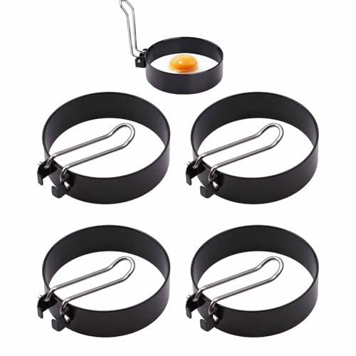 4 st äggring i rostfritt stål, non-stick rund form äggring, omelettform med handtag, gäller för omelett, äggrullar, pannkakor (svart)