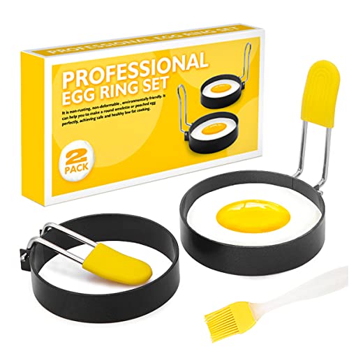 Äggring Tuxiaobu - Äggringar I Rostfritt Stål Anti-Skållningshandtag med En Oljeborste för Stekta Äggsmörgåsar - Stekning Eller Formning Av Ägg Formformar Hushållsköksformverktyg 2-Pack + Oljeborste (Rund)