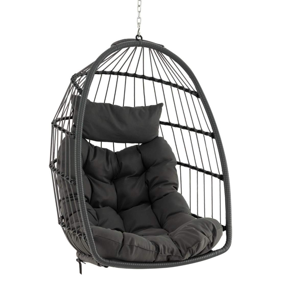 Hängande äggstol med dyna – hopfällbar PE-rotting, grå