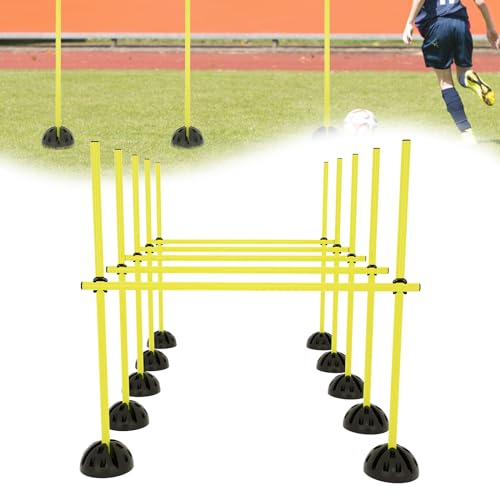 TRMLBE Jumpstångs-set, agility-hinder, set för fotboll, barn, träningsstänger, slalomstänger med stänger, fötter och anslutningsklämmor för koordinationsträning och smidighet – gul